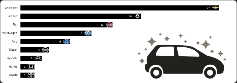 De acordo com os dados, a Chevrolet está bem à frente das outras marcas.