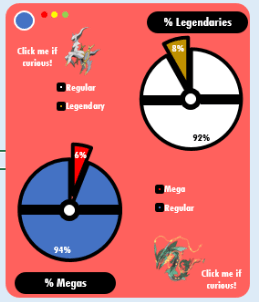 VBA magic for fun: With msgbox I created 2 short texts saying who are the most powerful legendary (Deoxys) and Mega (Rayquaza). The msgboxes appear when you click the pokemons close to the pie charts.