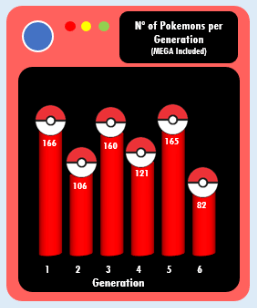 On the right, we can check some numbers data, as how many % of pokemons are legendary? how many have a Mega version? which generation has the highest number of pokemons?