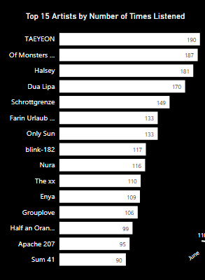 - A bar chart showing the artists I listened to the most