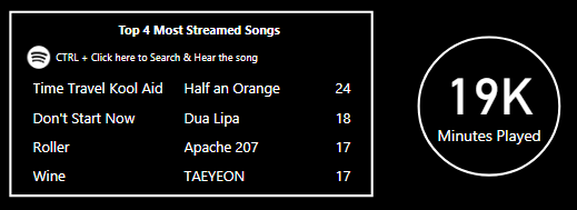 I’m back with a new simple board made on Power BI, this time using my Spotify data (19/06/19 – 19/06/20)!