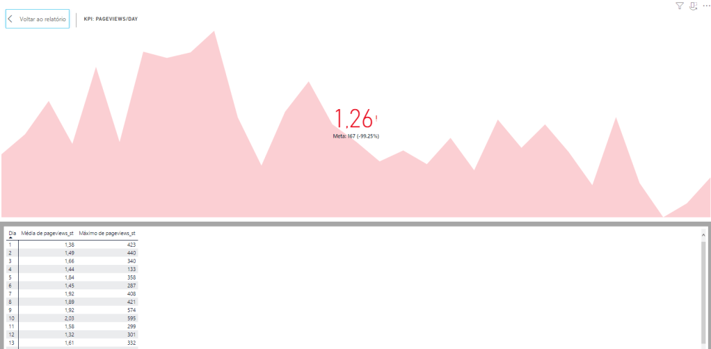 Using the maximum number of pageviews reached as the goal and pageviews average as current performance, we see how we are doing and how much more we need to work in order to reach higher.
