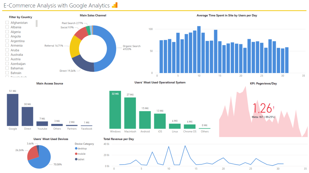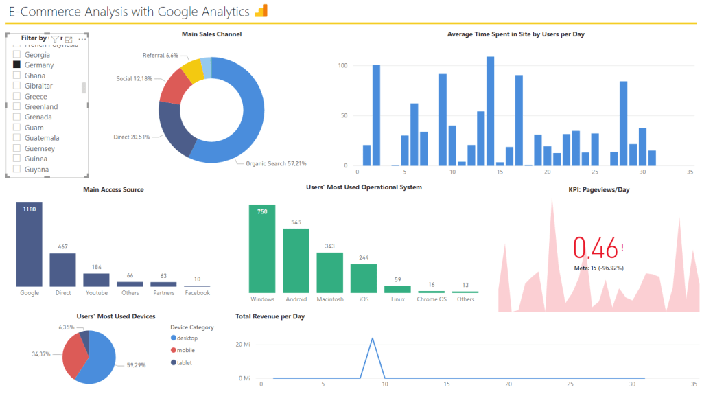 On this post I have a dashboard that shows the analysis of an E-Commerce website with data obtained from Google Analytics.