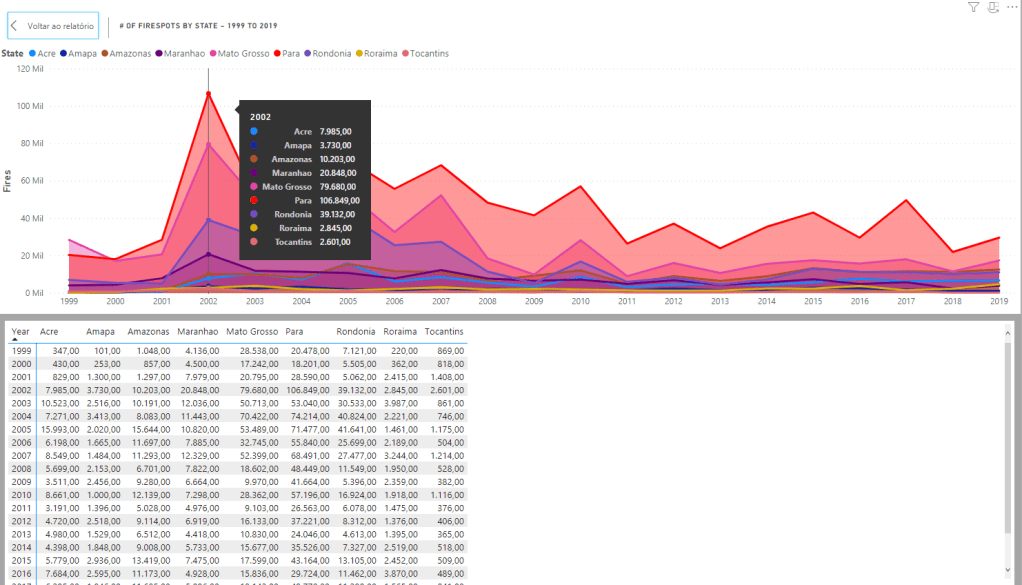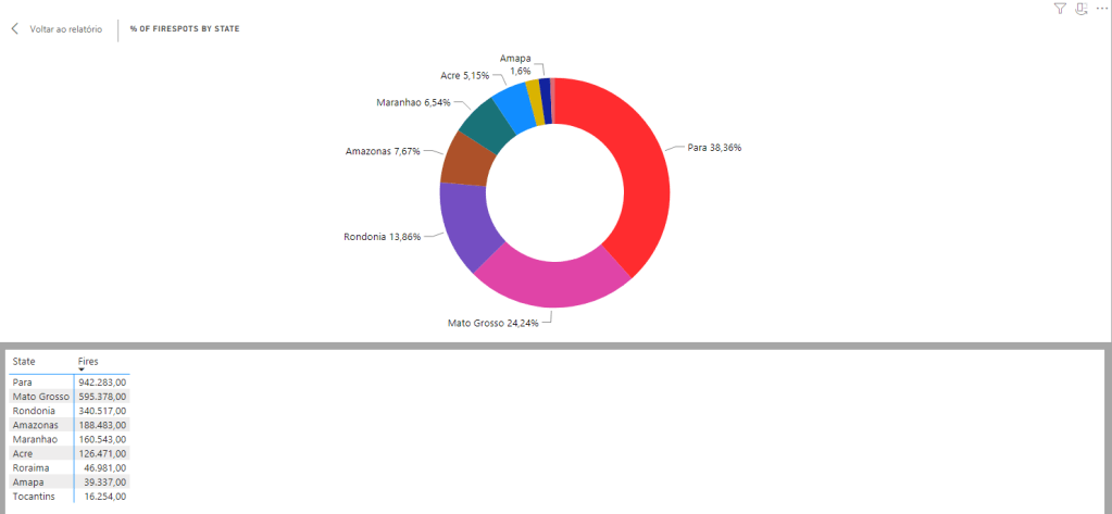 - Pará is by far the most affected state by fires;