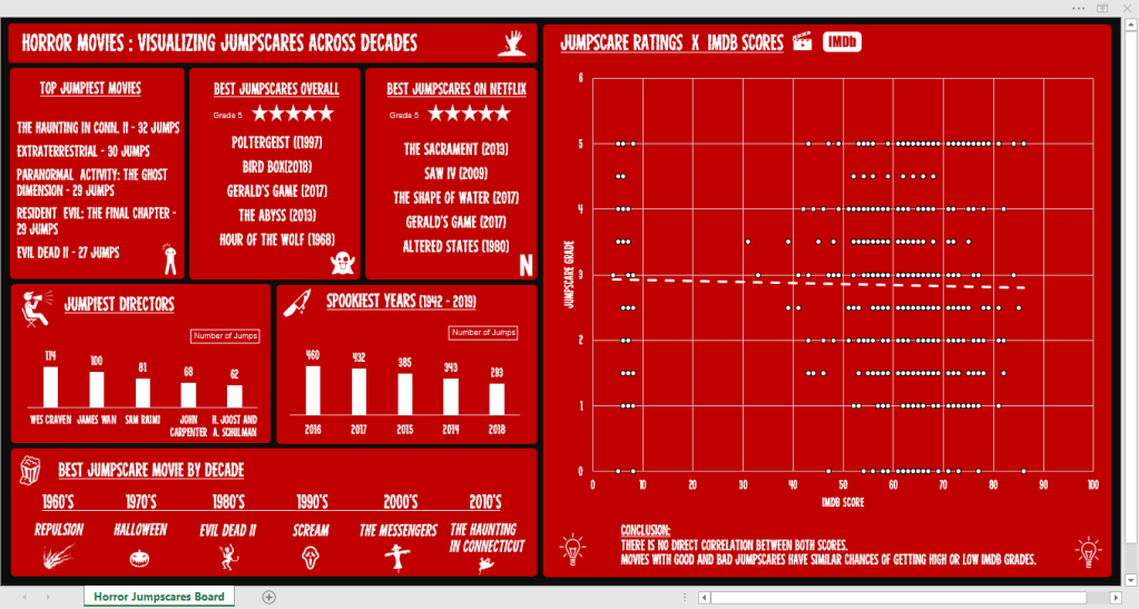 This ~spooky~ board will take us on a knowledge ride about horror movies through 6 decades, bringing informative cards and a chart that brings a simple conclusion.